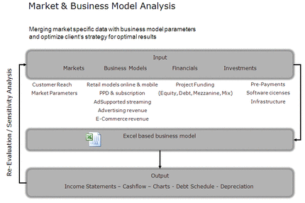 Our complex business planning process transfers market data, creative strategies, client specific conditions and revenue/cost projections into a comprehensive “real world” model that is a sound base for making decisions, allocating ressources and implement strategies.
